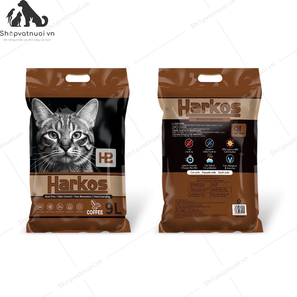 Cát Vệ Sinh Cát Đất Sét Mix Than Hoạt Tính H2 Harkos CDS020 9L