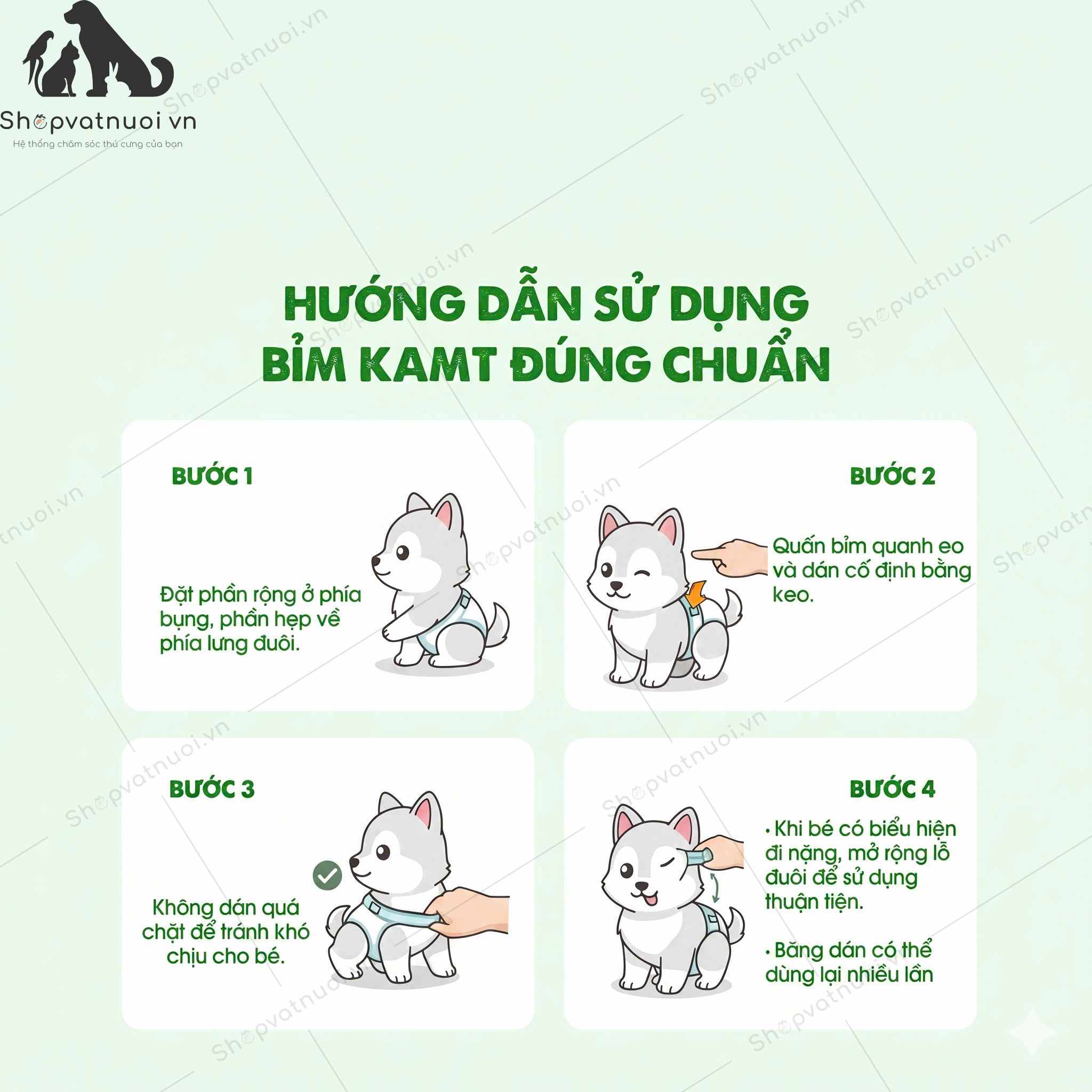 Thay tã quần / bỉm thường xuyên để đảm bảo sự sạch sẽ và thoải mái tối đa cho thú cưng.