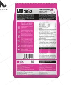 Với nguồn nguyên liệu tự nhiên từ cá ngừ đại dương và hương vị hấp dẫn, Thức ăn cho mèo trưởng thành MIU Choice sẽ giúp mèo của bạn thèm ăn hơn, ăn nhiều hơn, đảm bảo đầy đủ và cân bằng các dưỡng chất cần thiết. Sản phẩm được sản xuất theo công nghệ Châu Âu, đáp ứng tuyệt đối các yêu cầu dinh dưỡng để vật nuôi phát triển toàn diện.