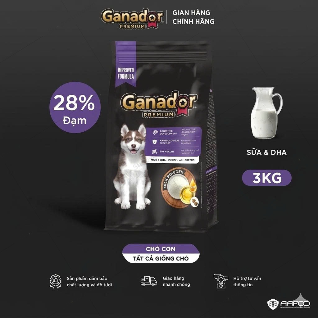 Thức Ăn Hạt Khô Chó Con Sữa Và DHA Cho Tất Cả Các Giống Puppy Ganador