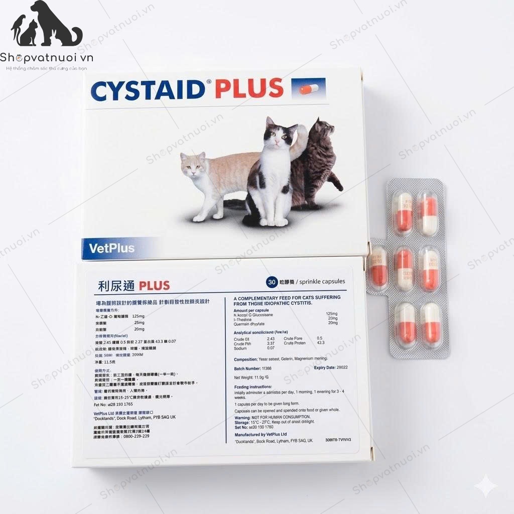 Lưu ý: Hiện nay hãng đã thay đổi bao bì và đơn giản hóa tên gọi từ Cystaid Plus thành CYSTAID®, nhưng thành phần và công dụng vẫn được giữ nguyên để hỗ trợ bàng quang cho mèo.