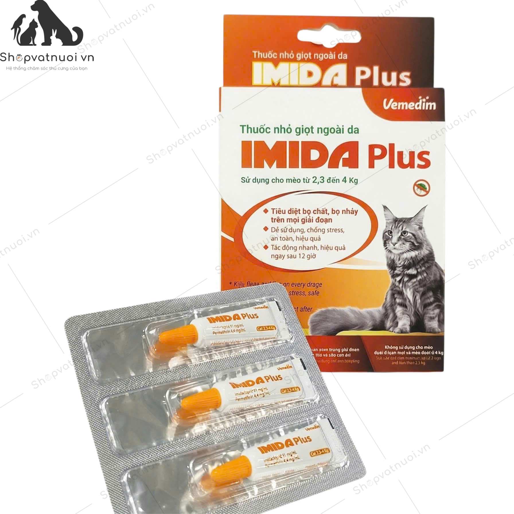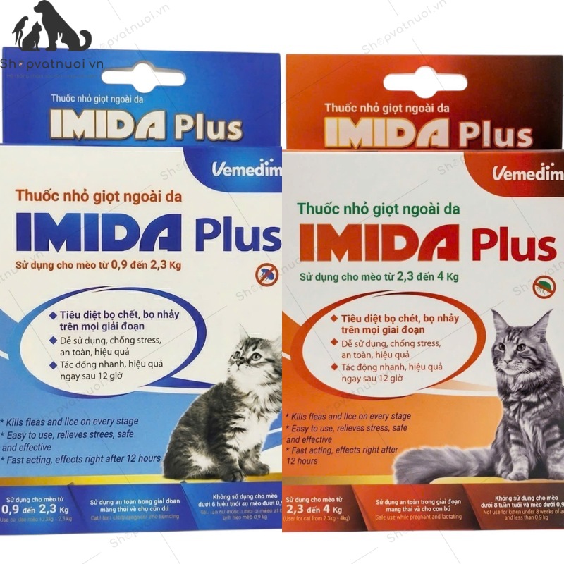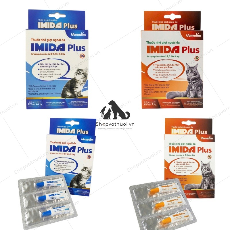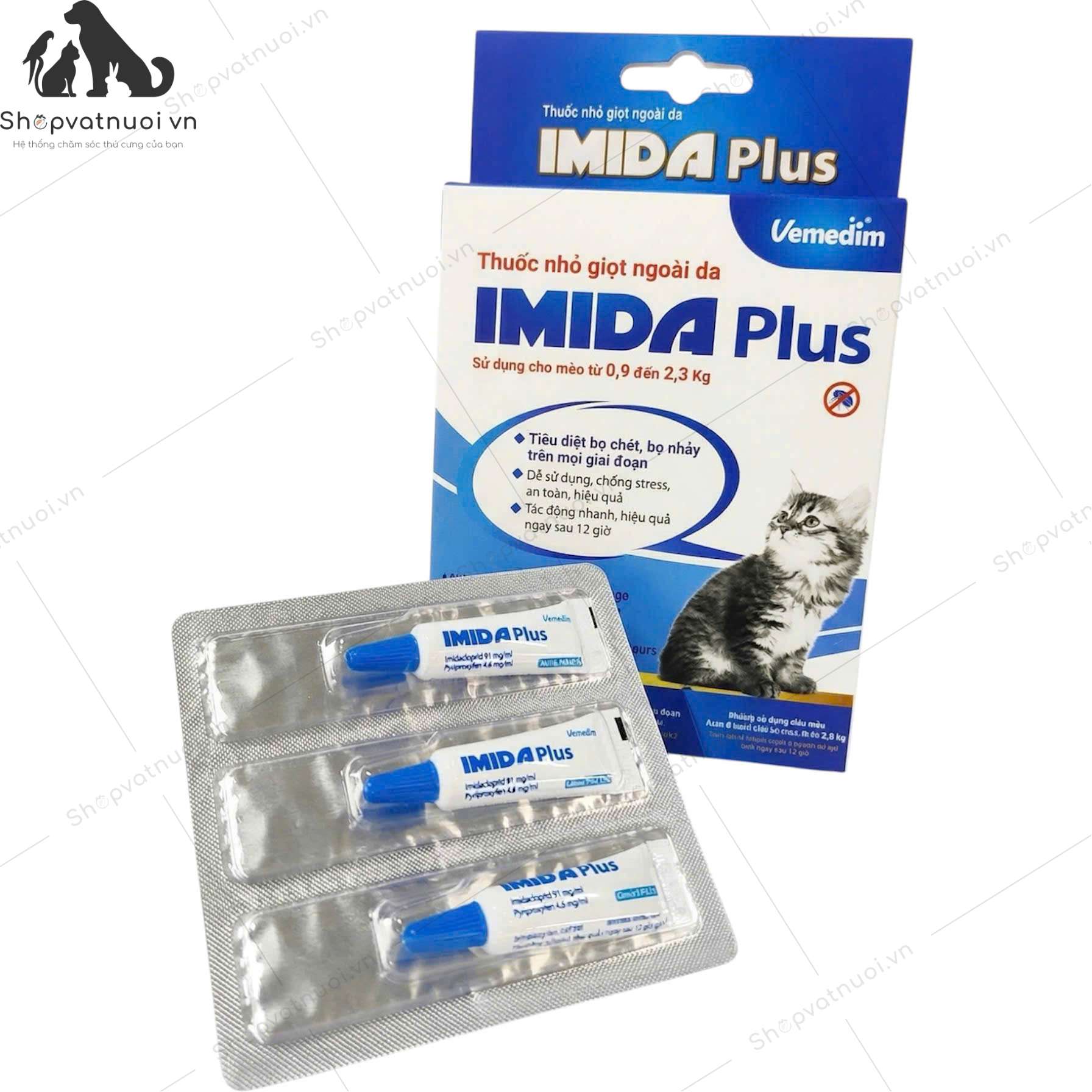 Thuốc nhỏ ngoài da IMIDA Plus là sản phẩm nhỏ gáy đặc trị bọ chét, rận trên mèo được sản xuất bởi Vemedim – Công ty dược thú y hàng đầu Việt Nam. Công thức tiên tiến giúp loại bỏ bọ chét nhanh chóng chỉ sau 12 giờ, bảo vệ mèo cưng suốt 1 tháng. Đây là lựa chọn thông minh dành cho những người yêu mèo muốn bảo vệ thú cưng mà vẫn đảm bảo chi phí hợp lý.